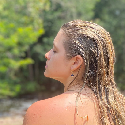 Lápis-Lazúli – Força Espiritual, Sabedoria e Equilíbrio (Banho Ouro 18K) #BrincoDuo