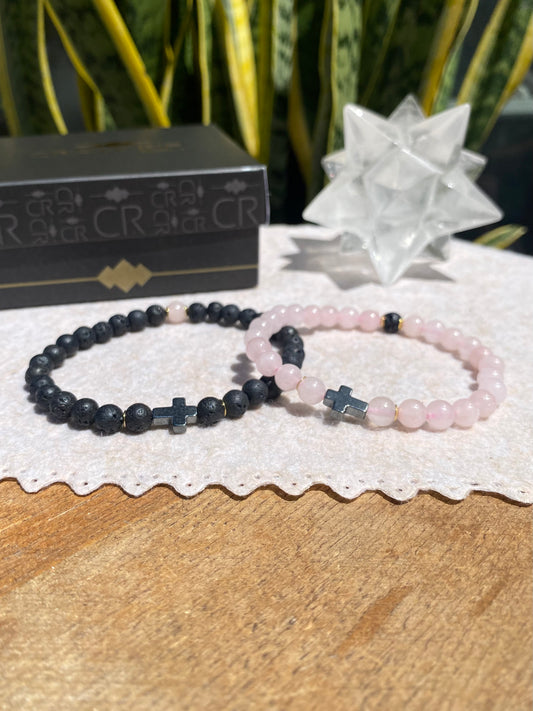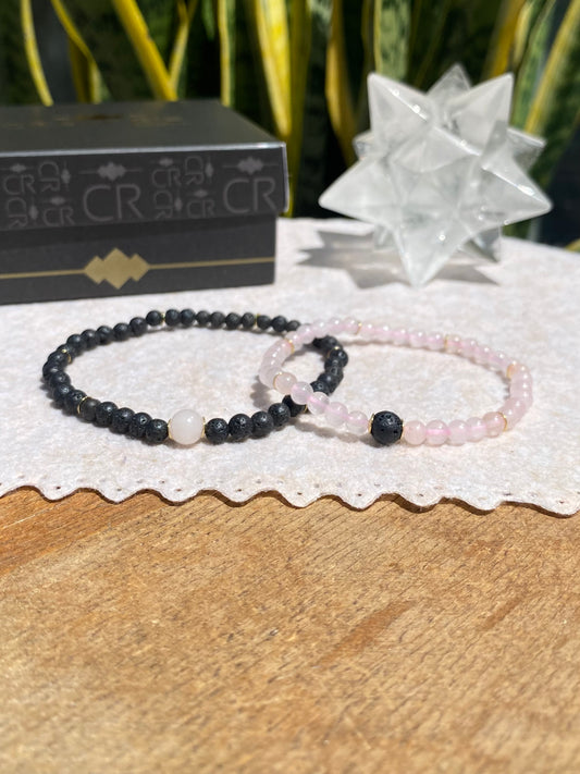 Quartzo Rosa e Lava Vulcânica – Paz, Amor e Proteção (Banho Ouro 18K) #CasalCR