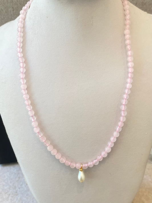 CR Choker | Colar Quartzo Rosa e Pérola – Paz, Amor e Autoestima (Banho Ouro 18K)