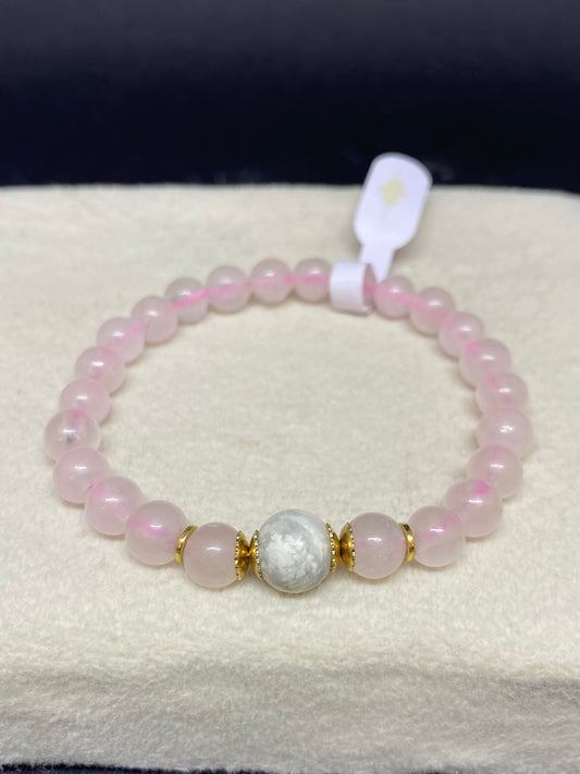 Quartzo Rosa, Lava Vulcânica e Howlita – Amor, Proteção e Calmaria (Banho Ouro 18K) #CasalCR