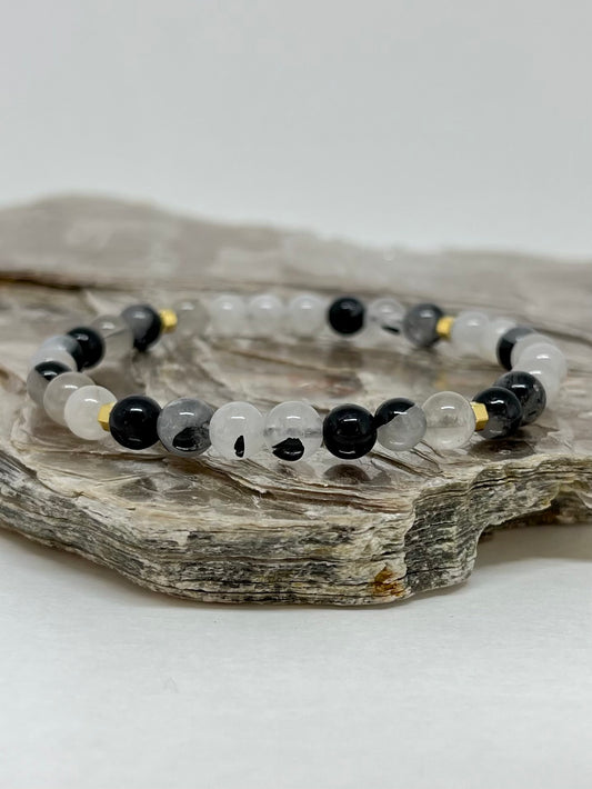 Quartzo Turmalinado, Howlita e Trevos de Madrepérola #LuckyCR