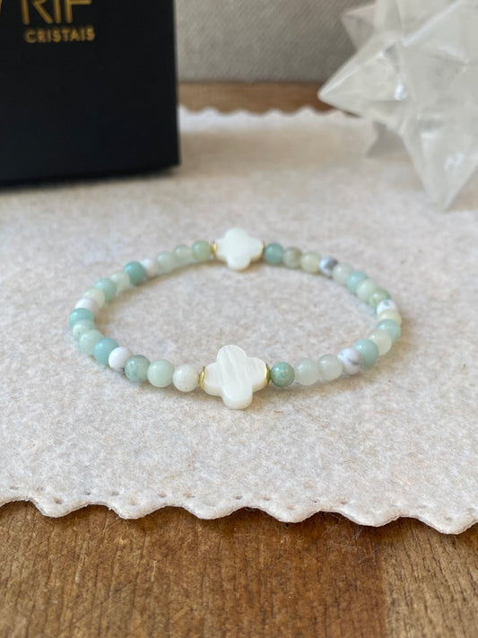 CR Lucky | Amazonita, Howlita e Madrepérola – Bem-estar, Paz e Boa Sorte (Banho Ouro 18K)