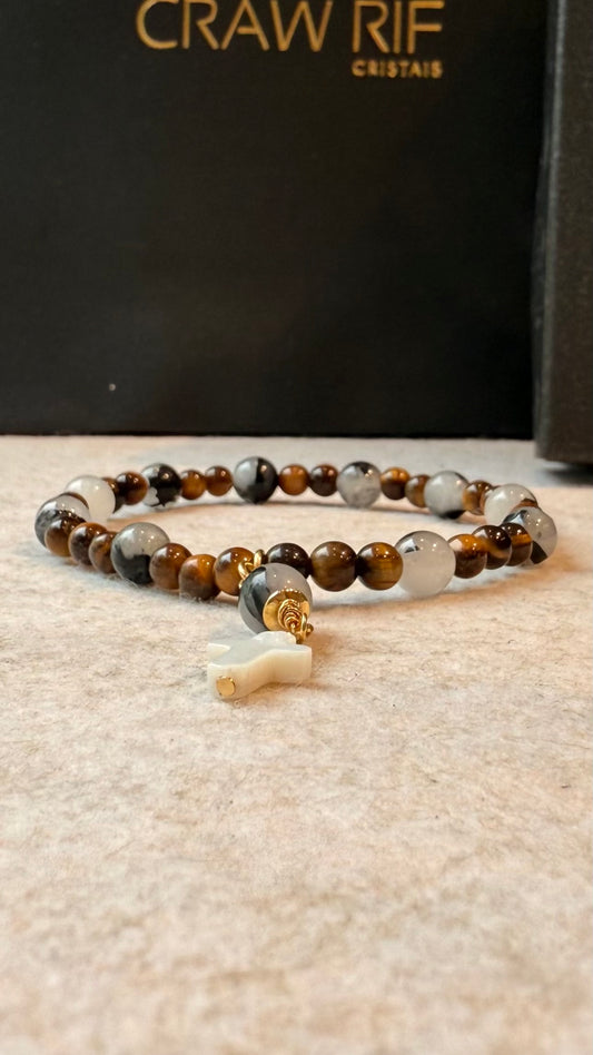 CR Basalt | Olho de Tigre, Hematita e Quartzo Turmalinado – Proteção, Coragem e Clareza (Banho Ouro 18K)