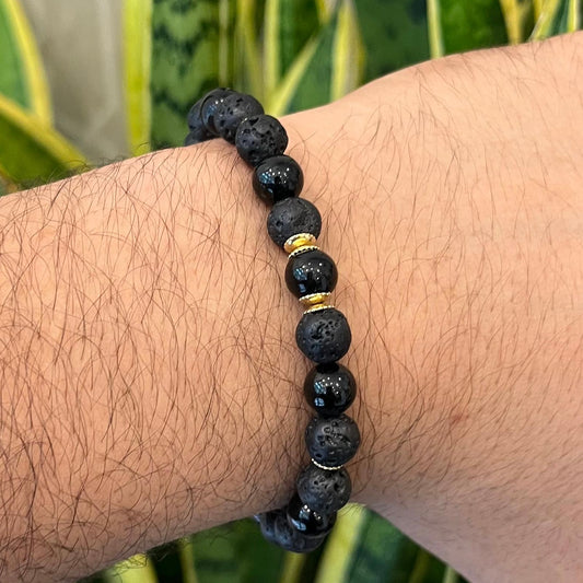 CR Golden | Turmalina Negra e Lava Vulcânica – Proteção, Autoconfiança e Vigor (Banho Ouro 18K)