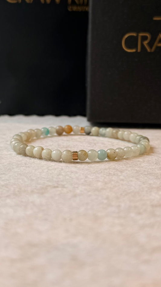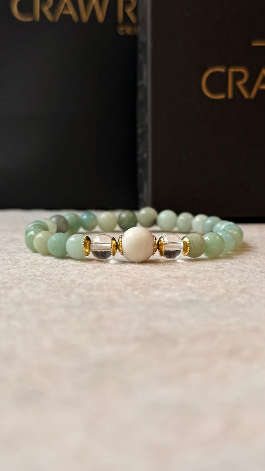 CR Uno | Amazonita, Quartzo Cristal e Howlita – Bem-estar, Clareza e Paz (Banho Ouro 18K)