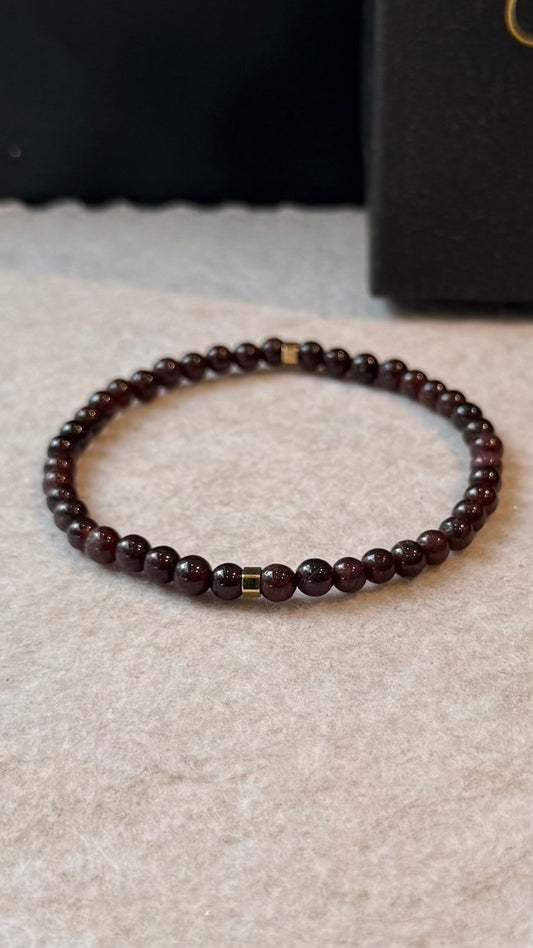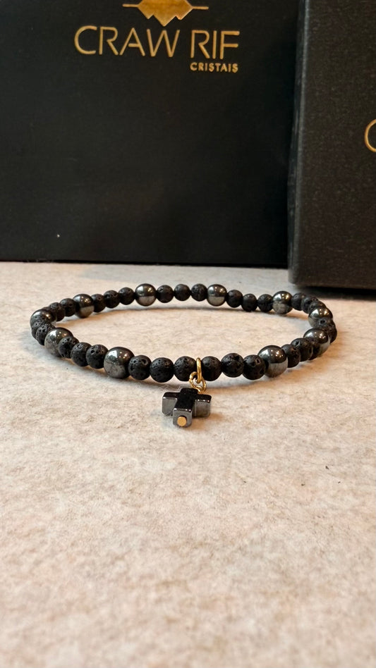 CR Minimalista | Pedra Granada, Hematita, Lava Vulcânica e Turmalina Negra – Prosperidade, Determinação e Proteção (Banho Ouro 18K)