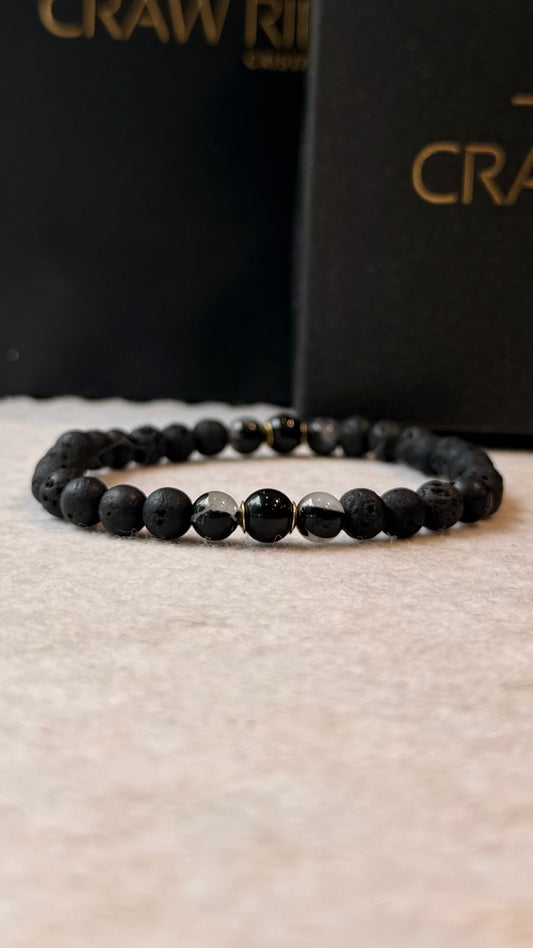 CR Aegis | Obsidiana, Lava Vulcânica e Olho de Tigre – Escudo Energético, Vigor e Proteção (Banho Ouro 18K)