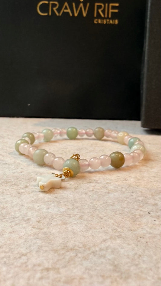 Quartzo Rosa e Amazonita – Amor, Autoestima e Bem-estar (Banho Ouro 18K) #TerçodeMãoCR