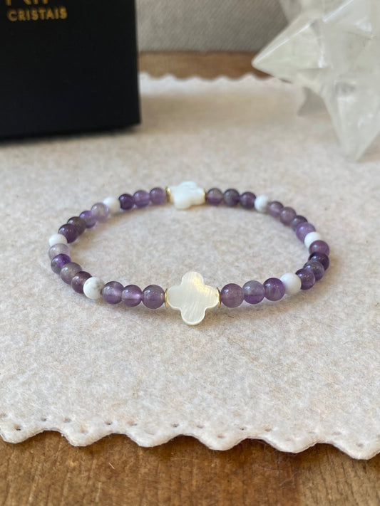 CR Lucky | Ametista, Howlita e e Madrepérola – Espiritualidad, Paz e Boa Sorte (Banho Ouro 18K)