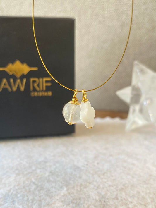 CR Lunna | Quartzo Turmalinado e Trevo de Madrepérola – Limpeza Energética, Clareza e Proteção (Banho Ouro 18K)