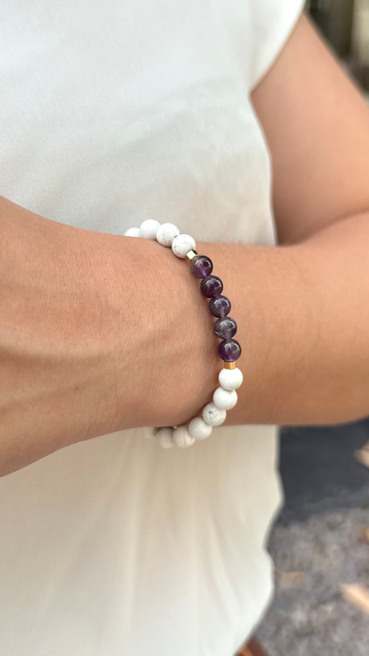 CR Prime | Howlita e Ametista – Paz, Harmonia e Espiritualidade (Banho Ouro 18K)