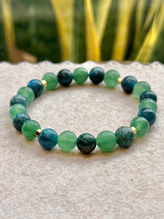 CR Prime | Apatita Azul e Quartzo Verde – Intuição, Saúde e Bem-estar (Banho Ouro 18K)