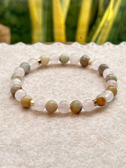 CR Line | Quartzo Rosa, Amazonita e Howlita – Paz, Amor e Calmaria (Banho Ouro 18K)