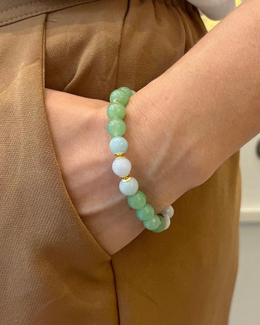 CR Moments | Quartzo Verde, Amazonita e Água Marinha – Saúde, Bem-estar e Equilíbrio Emocional (Banho Ouro 18K)