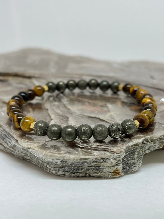 CR Prime | Pirita e Olho de Tigre – Prosperidade, Abundância e Proteção (Banho Ouro 18K)