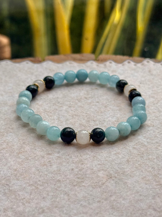 CR Moments | Howlita, Amazonita e Água Marinha – Paz, Bem-estar e Equilíbrio Emocional (Banho Ouro 18K)