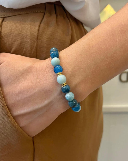 CR Prime | Amazonita e Apatita Azul – Calmaria, Intuição e Bem-estar (Banho Ouro 18K)