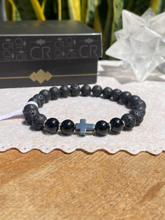 Lava Vulcânica, Hematita e Quartzo Turmalinado – Proteção, Coragem e Clareza (Prata 950) #AegisCR