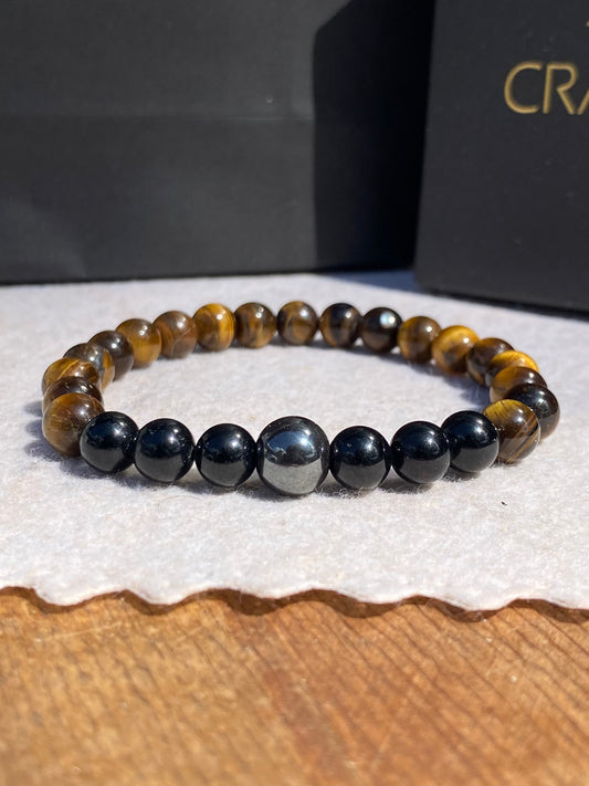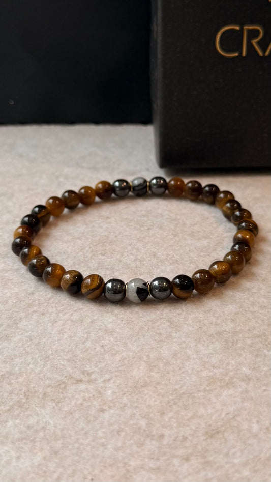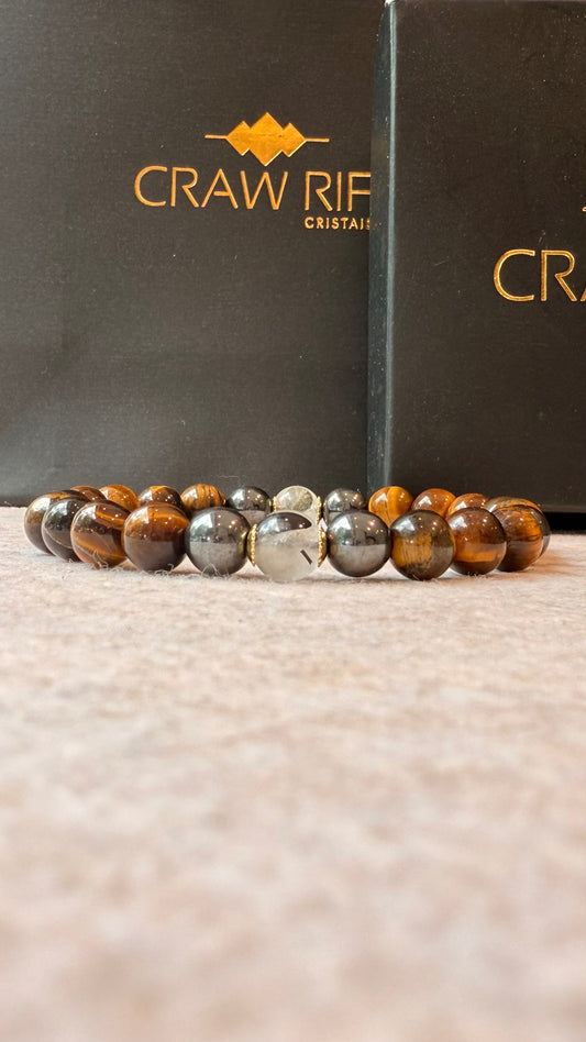 CR Aegis | Olho de Tigre, Hematita e Quartzo Turmalinado – Proteção, Coragem e Clareza (Banho Ouro 18K)