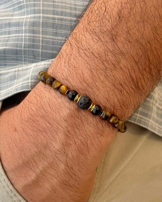 Olho de Tigre e Lava Vulcânica – Proteção, Positividade e Vigor (Banho Ouro 18K) #DeluxeCR