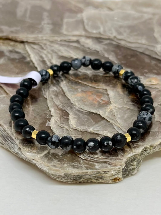 Lava Vulcânica, Hematita e Obsidiana Flocos de Neve – Escudo Energético, Proteção e Coragem #FaithCR