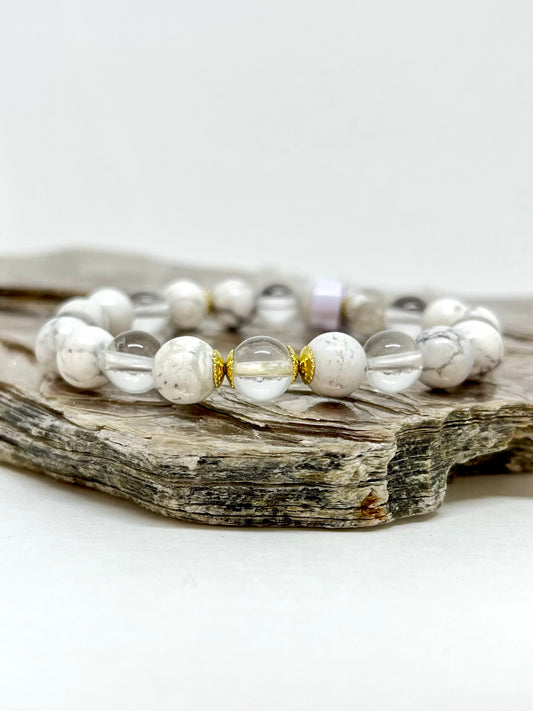 Howlita e Quartzo Cristal – Paz, Calmaria e Clareza (Banho Ouro 18K) #GoldenCR