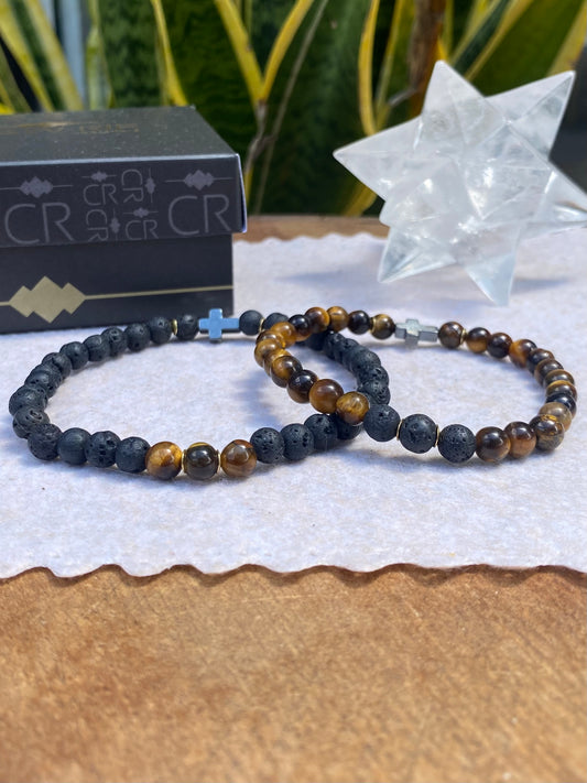 Lava Vulcânica e Olho de Tigre – Proteção, Positividade e Vigor (Banho Ouro 18K) #DeluxeCR