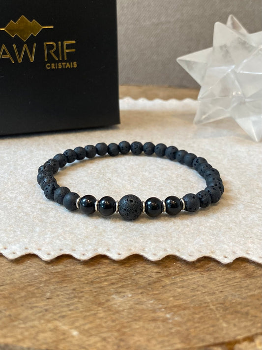 Lava Vulcânica, Turmalina Negra e Hematita Flecha – Proteção, Coragem, Força Pessoal #ConjuntoCR