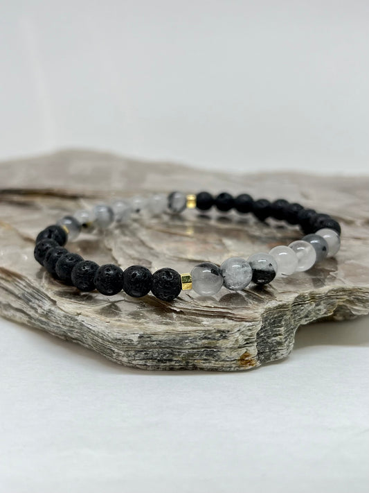 Lava Vulcânica, Hematita e Obsidiana Flocos de Neve – Escudo Energético, Proteção e Coragem #FaithCR