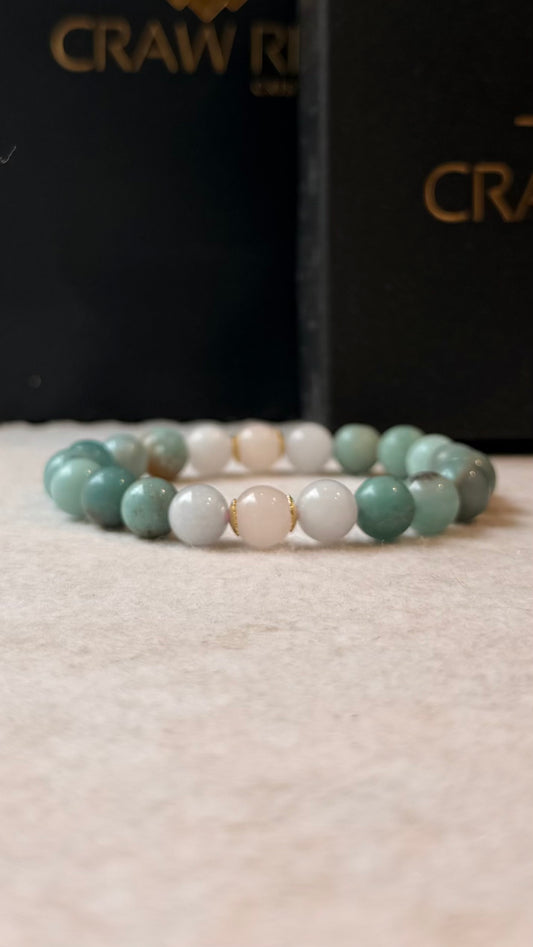 Amazonita, Água Marinha e Quartzo Rosa – Bem-Estar, Equilíbrio Emocional e Amor (Banho Ouro 18K) #AegisCR