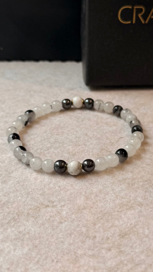 Quartzo Turmalinado • Hematita • Howlita | Clareza & Paz