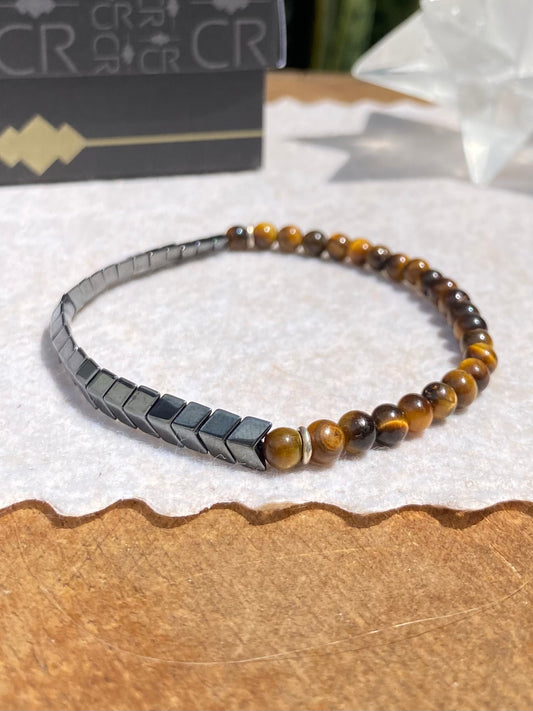 CR Line Flecha | Olho de Tigre e Hematita – Proteção, Positividade e Fortalecimento Pessoal (Prata 950)