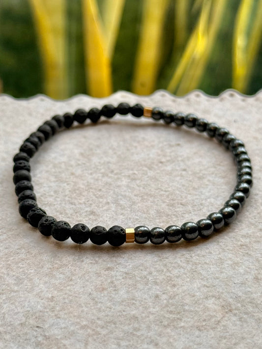 CR Line | Lava Vulcânica e Hematita – Proteção, Vigor e Força Pessoal (Banho Ouro 18K)