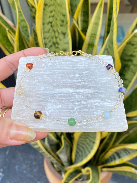 7 Chakras e Quartzo Cristal – Limpeza Energética e Equilíbrio (Banho Ouro 18K) #TornozeleiraCR