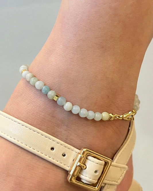 Amazonita – Calmaria, Bem-Estar e Boa Comunicação (Banho Ouro 18K) #TornozeleiraCR