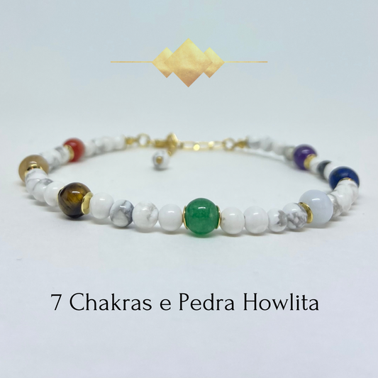 7 Chakras e Howlita – Paz e Equilíbrio (Banho Ouro 18K) #TornozeleiraCR