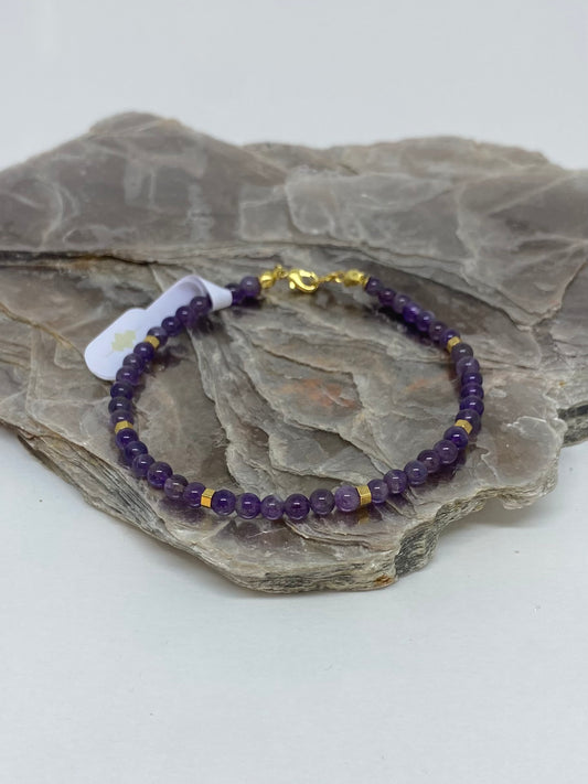 Ametista – Espiritualidade, Harmonia e Proteção (Banho Ouro 18K) #TornozeleiraCR