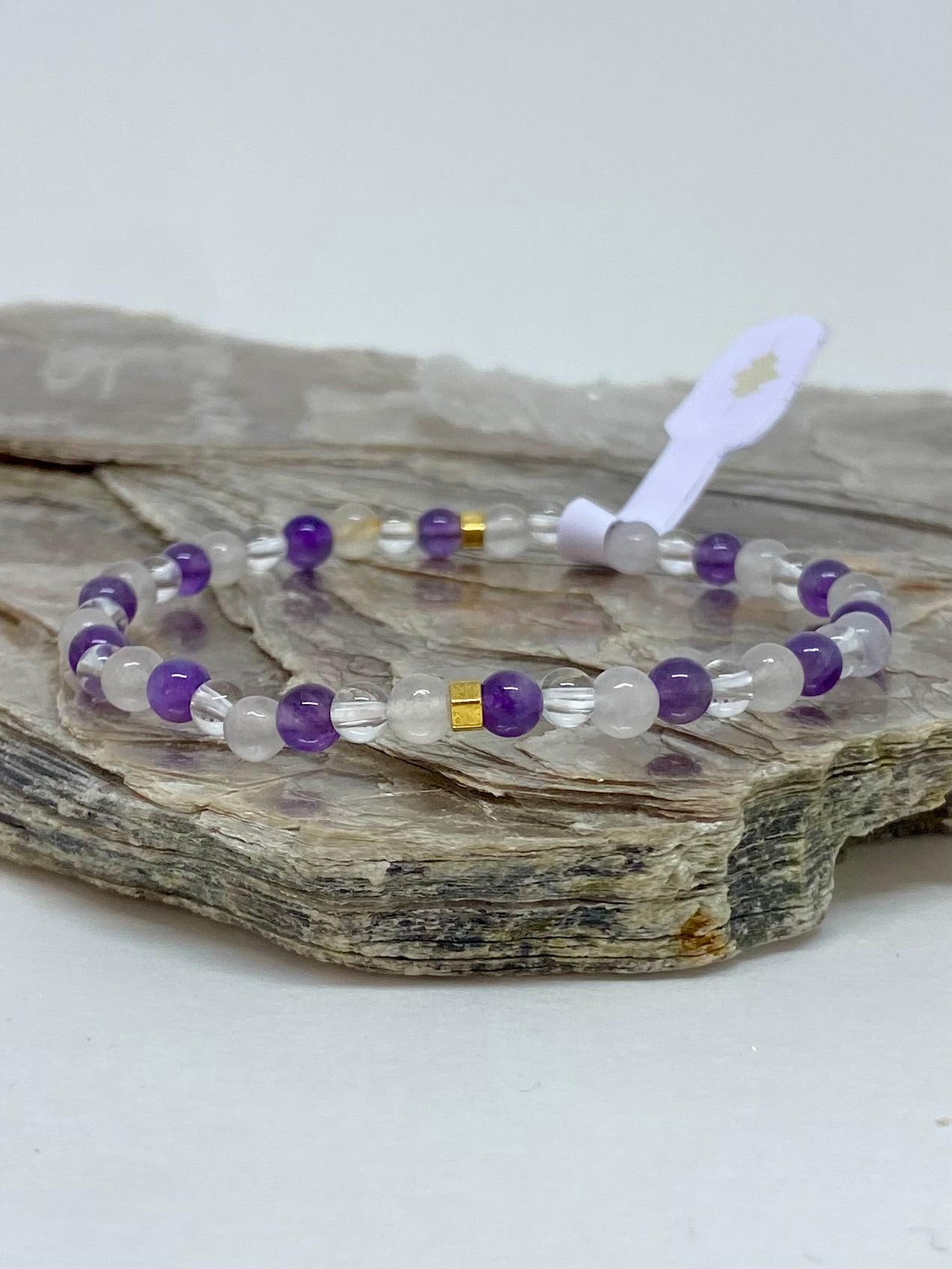 Ametista, Quartzo Cristal e Quartzo Rosa – Espiritualidade, Clareza e Amor (Banho Ouro 18K) #MinimalistaCR