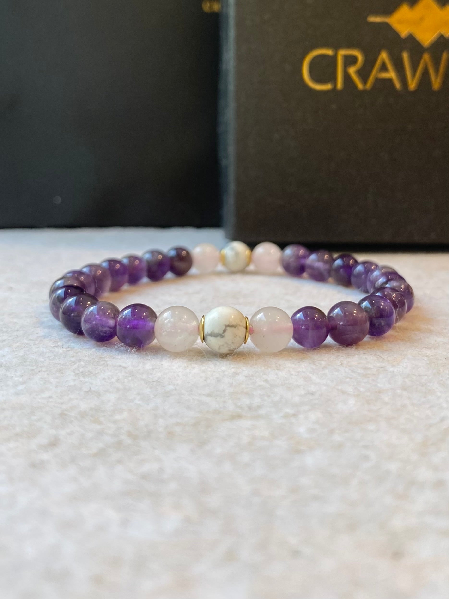 Joia Craw Rif, feita à mão, com cristais de Ametista, Quartzo Rosa & Howlita.
