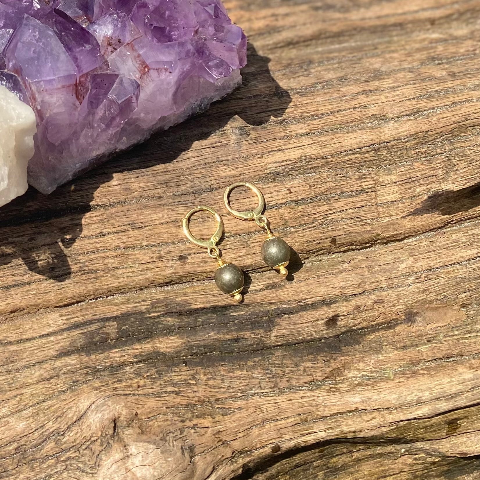 Brinco Uno feito à mão com Pedra Pirita para criar campo de prosperidade e abundância no dia a dia!!