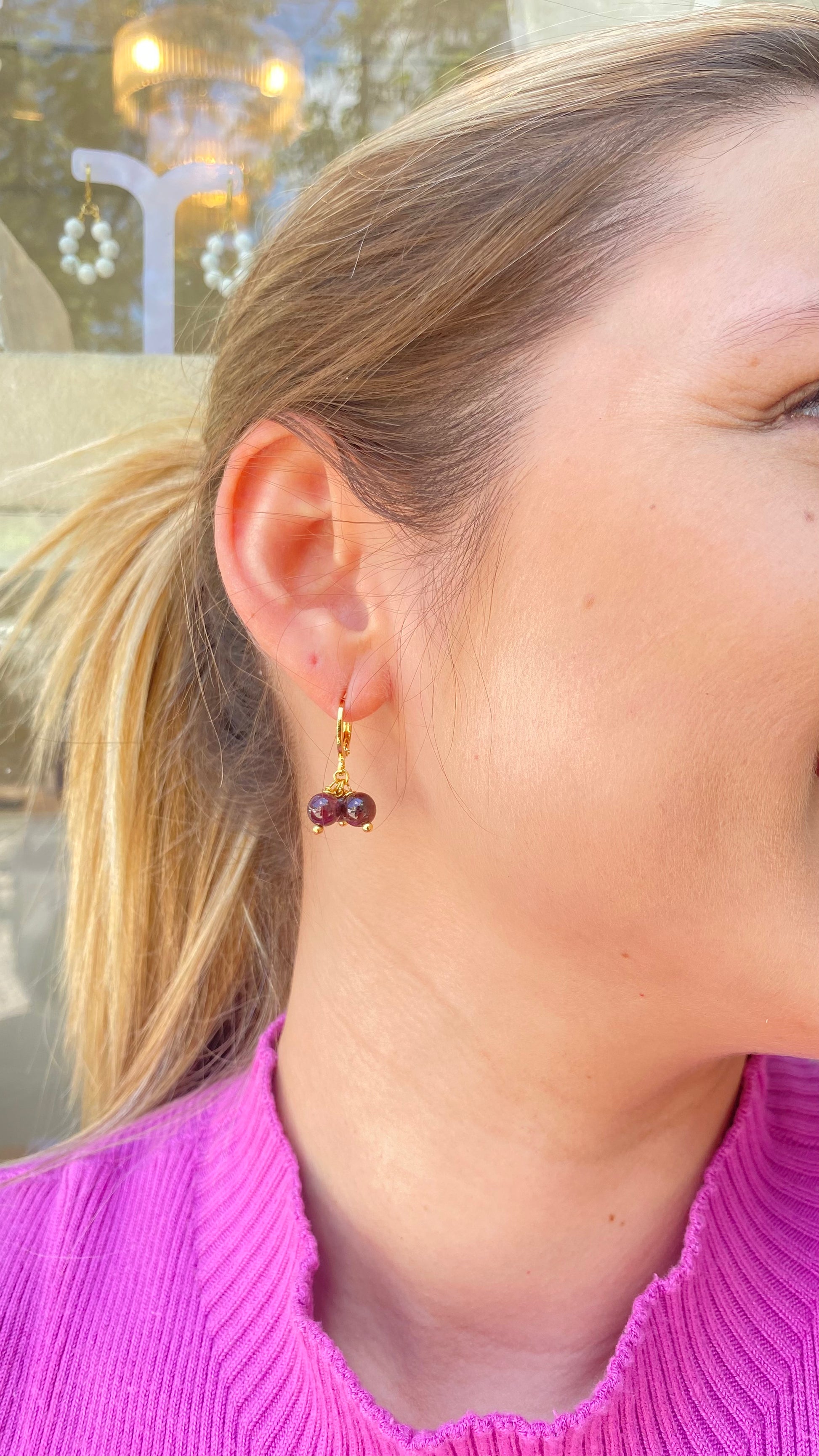 Brinco Uva | Pedra Granada – Prosperidade, Determinação e Realização (Banho Ouro 18K)