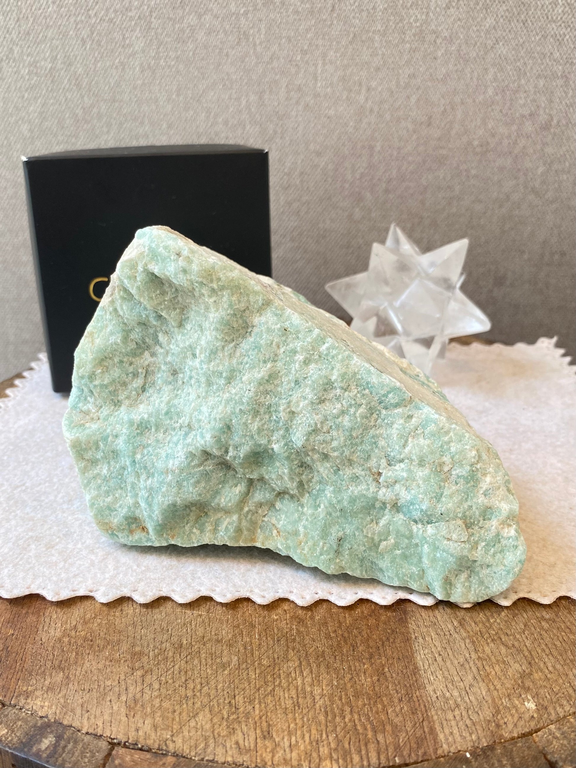 A Amazonita é um cristal calmante e restaurador. Sua energia suave ajuda a acalmar a mente e aliviar tensões, promovendo bem-estar, confiança e harmonia nas relações. Sua vibração tranquilizadora ajuda a aliviar estresse e a bloquear energias negativas, criando um ambiente de paz interior.