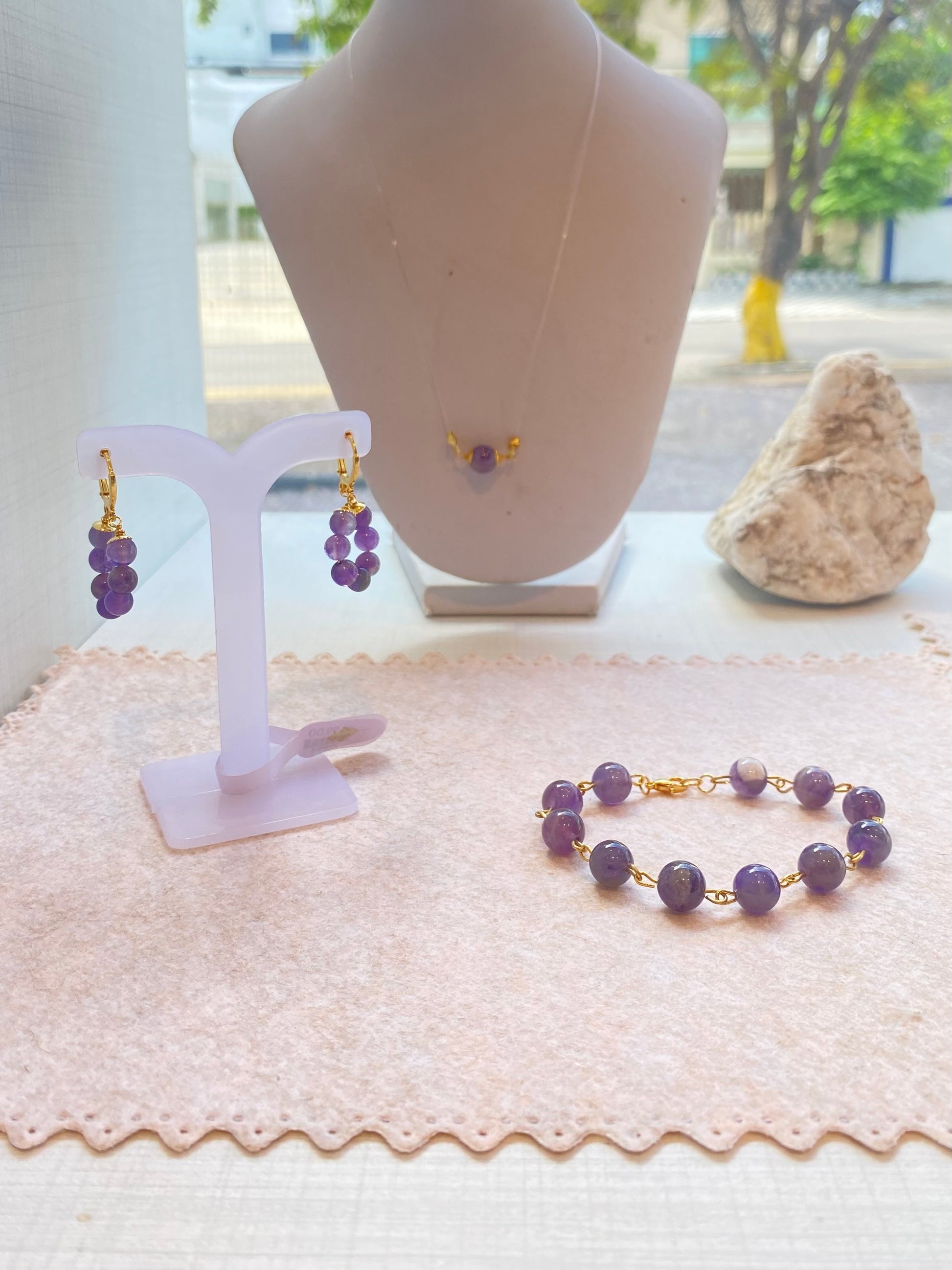 Ametista – Espiritualidade, Harmonia e Proteção (Banho Ouro 18K) #ConjuntoCR