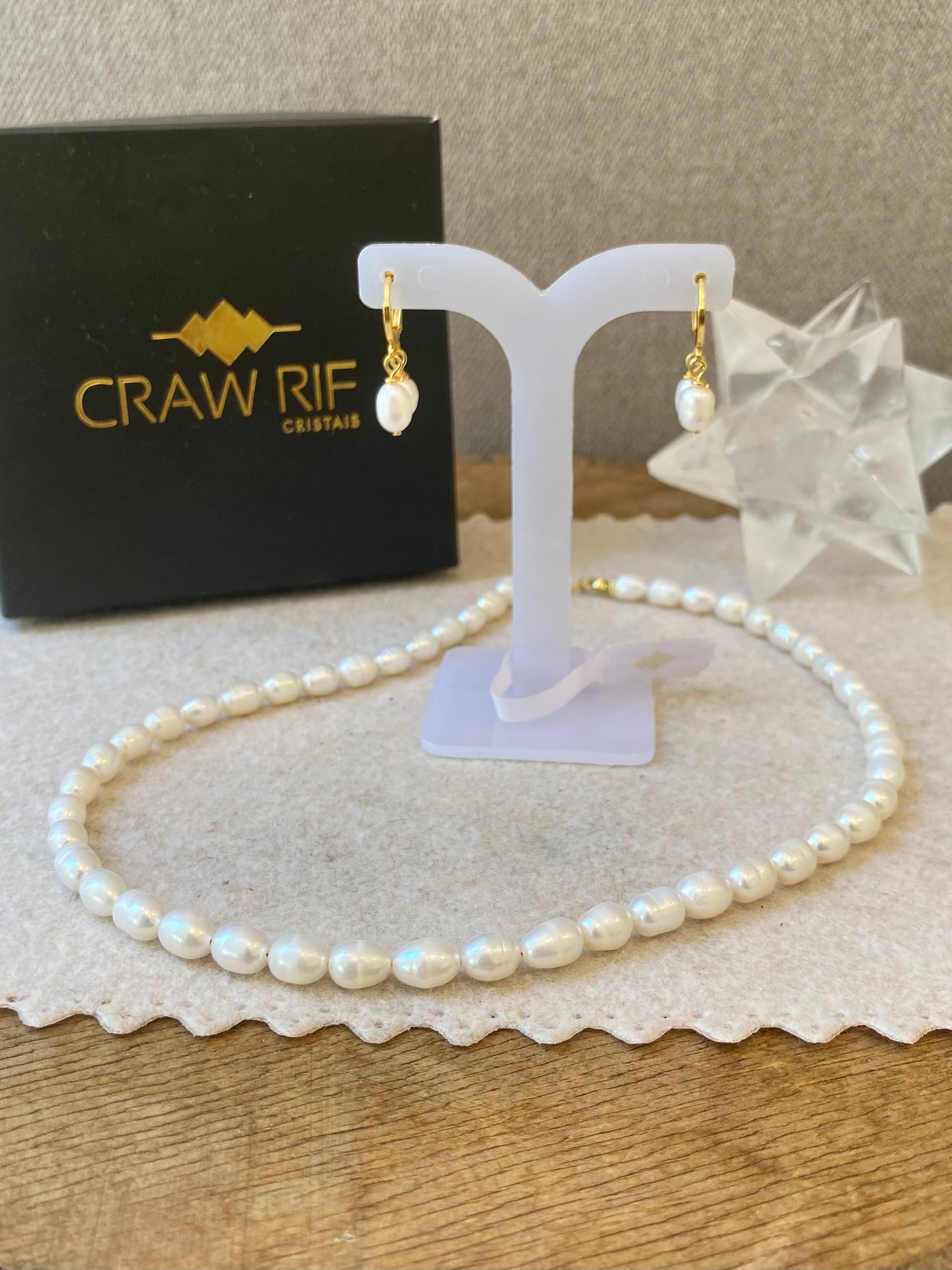 Conjunto Craw Rif, feito de forma artesanal, com Pérolas Naturais cultivadas em água doce.