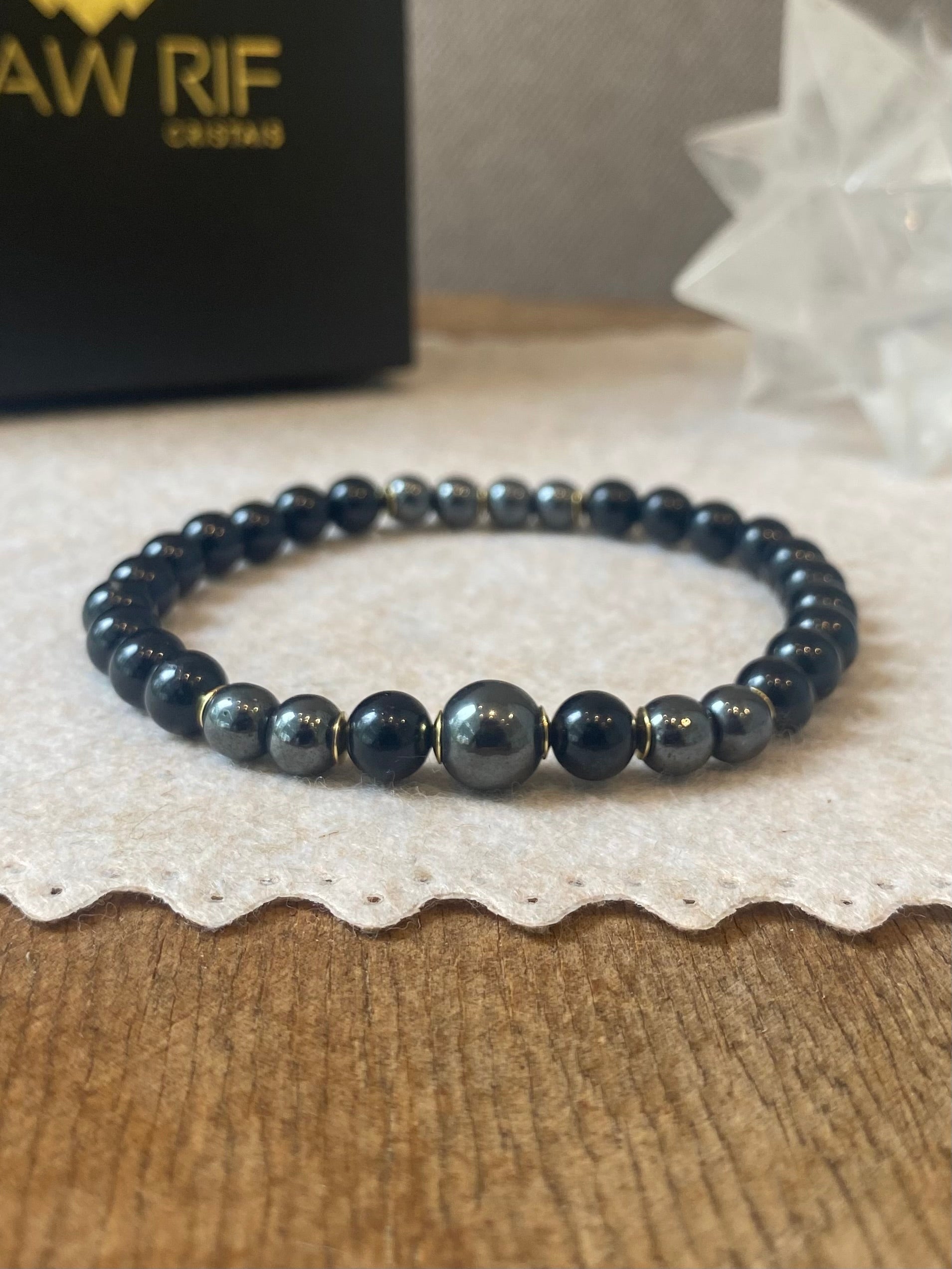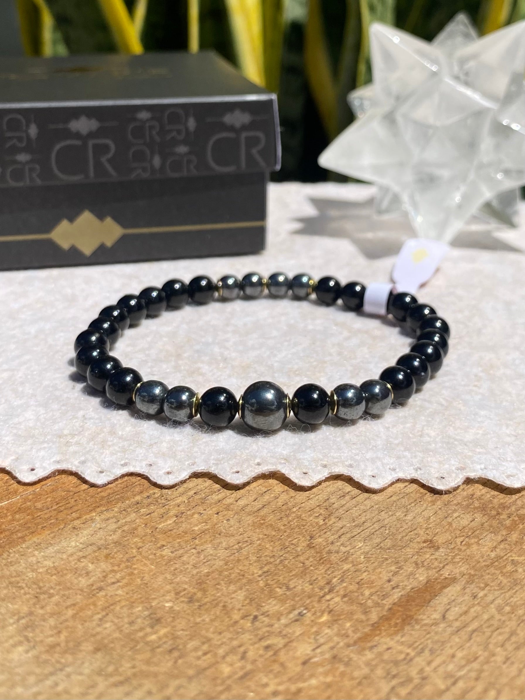 CR Deluxe | Turmalina Negra e Hematita – Proteção, Coragem e Força Pessoal (Banho Ouro 18K)