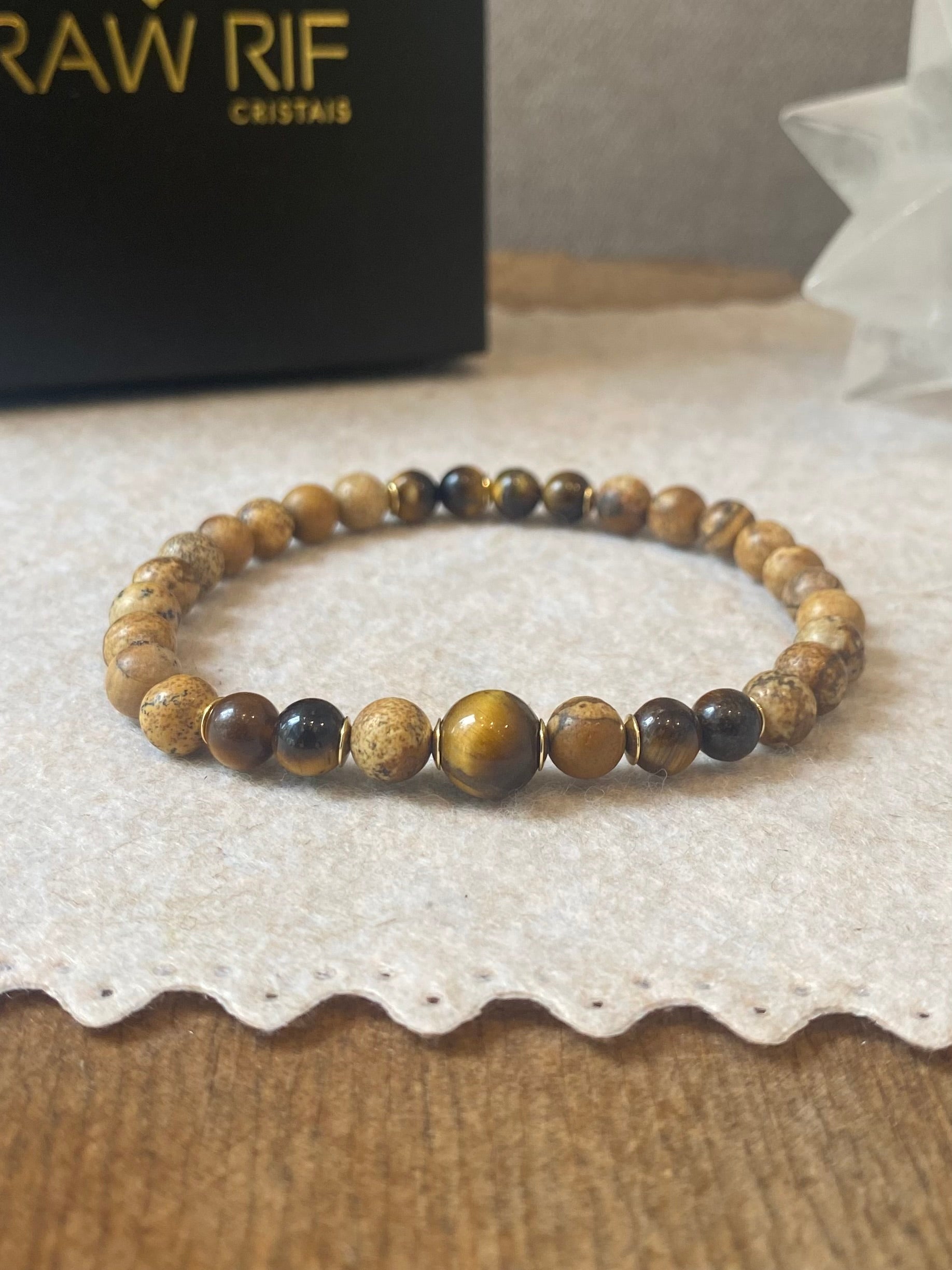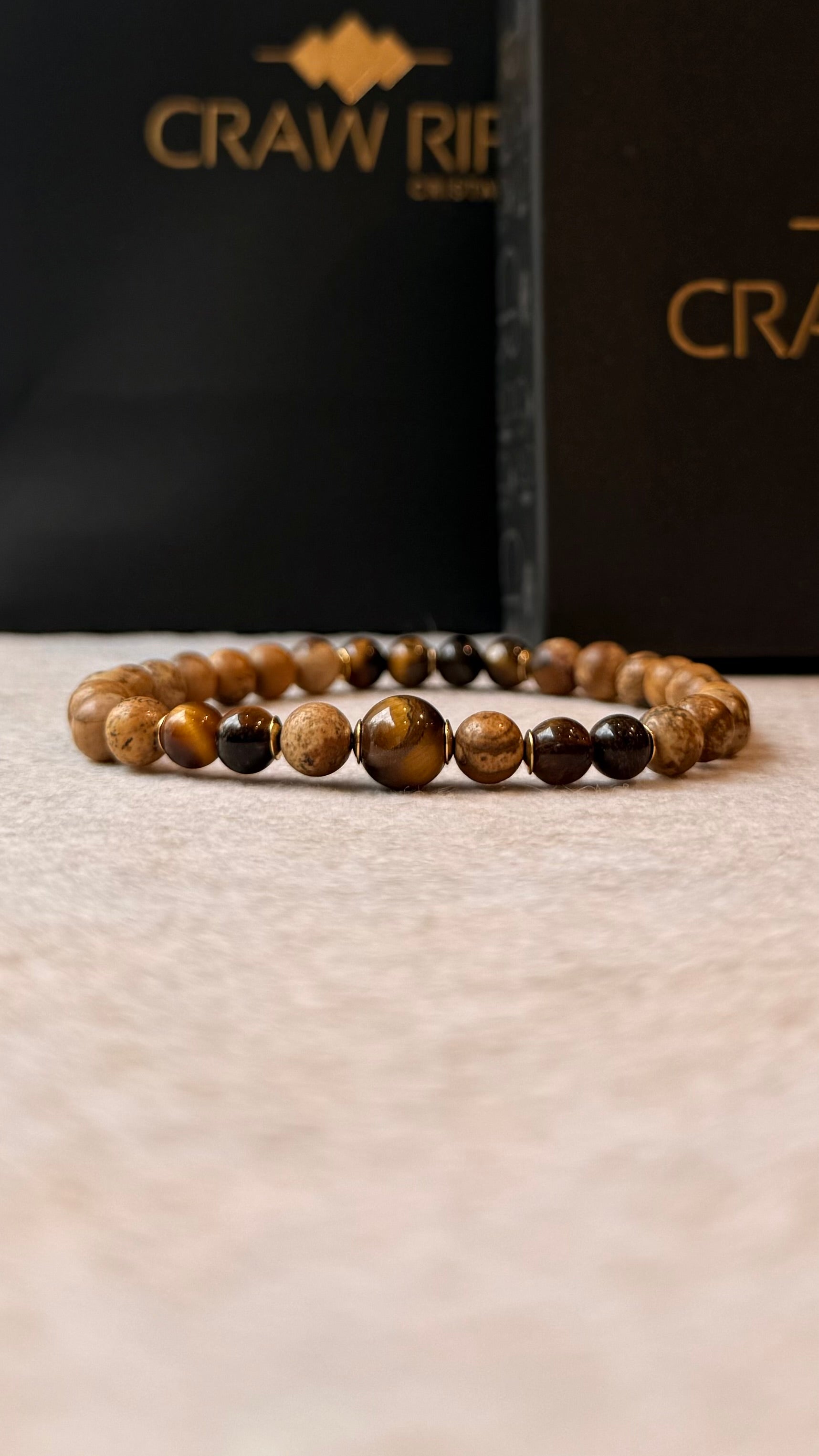 CR Deluxe | Jaspe Madeira e Olho de Tigre – Estabilidade, Proteção e Positividade (Banho Ouro 18K)