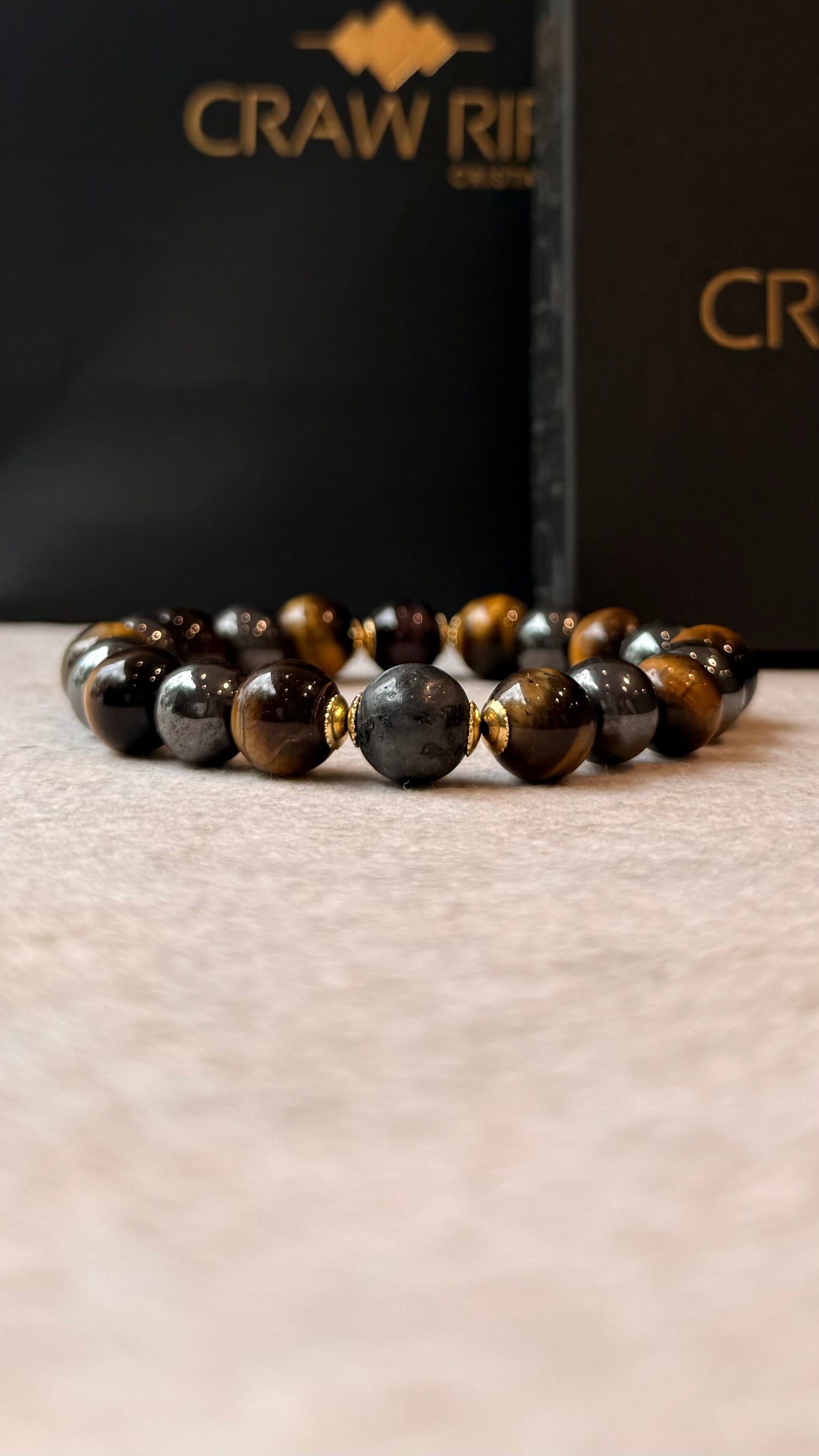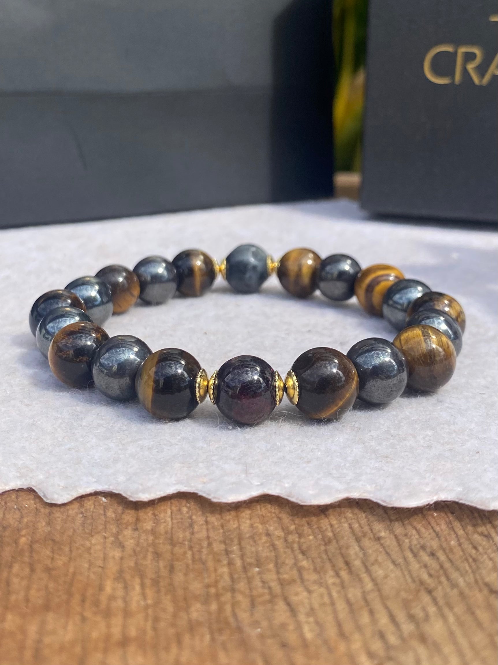 Pedra Granada, Olho de Tigre, Hematita e Labradorita – Determinação, Proteção, Coragem e Controle Mental #GoldenCR10mm