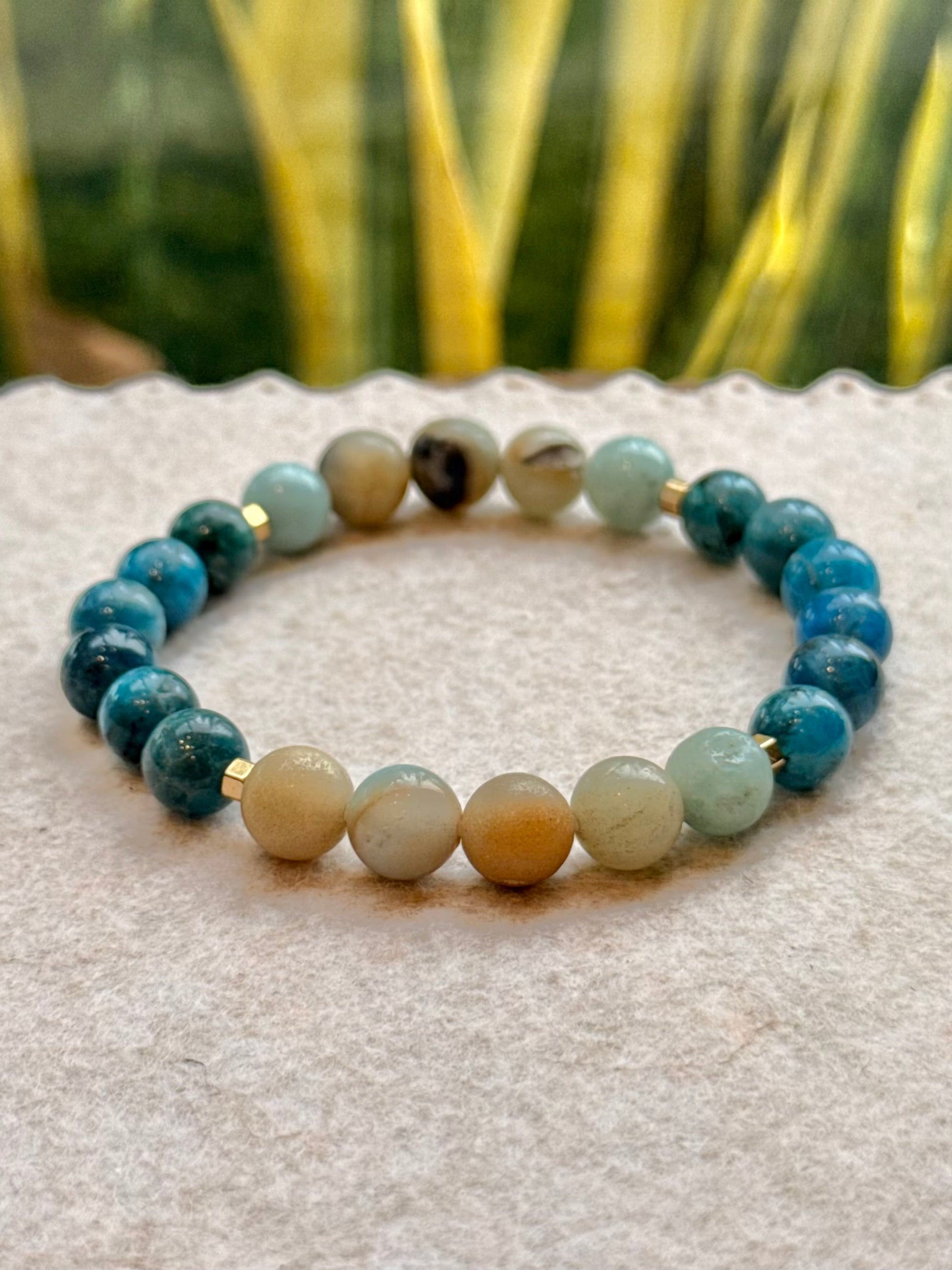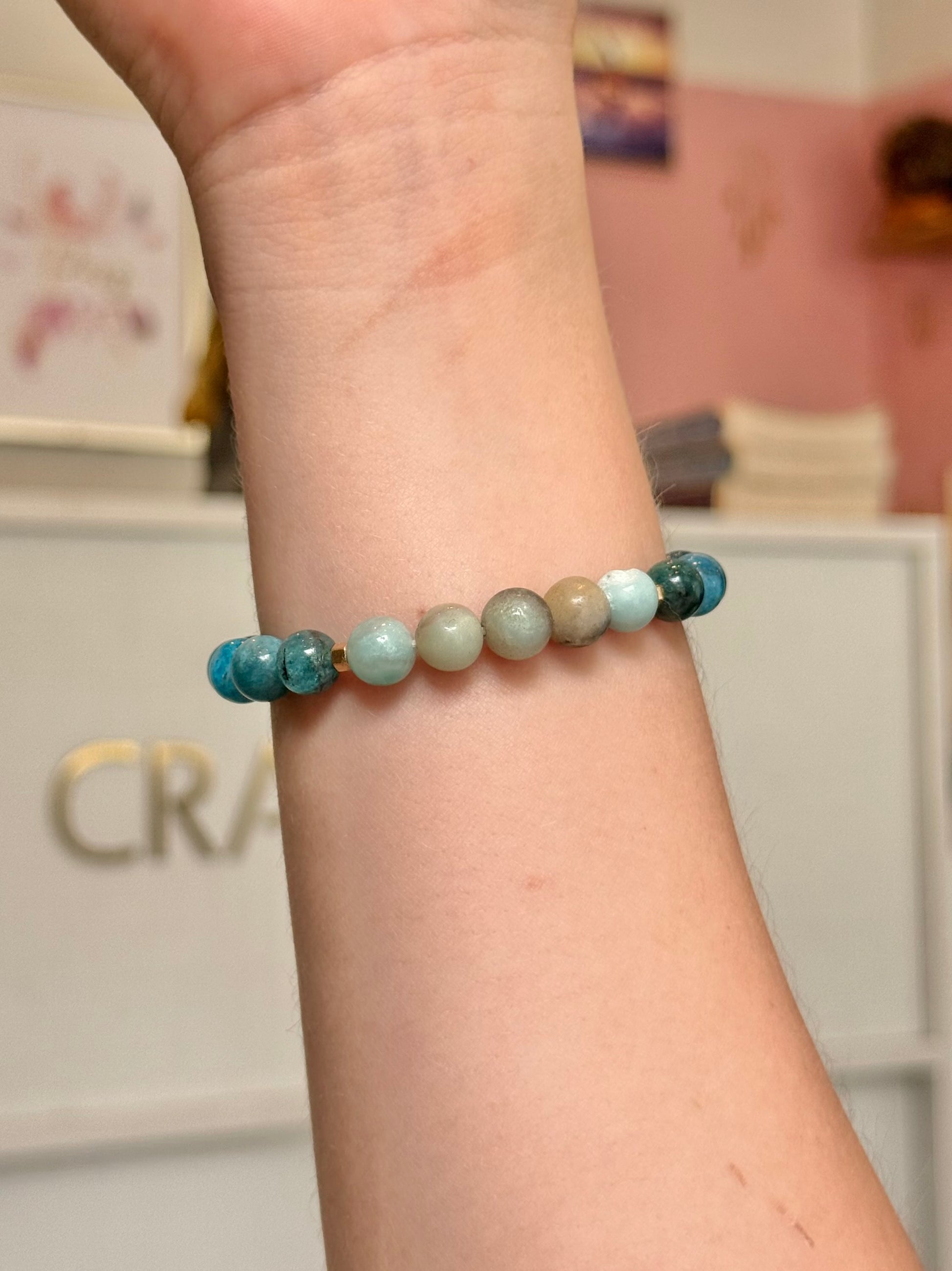 CR Prime | Amazonita e Apatita Azul – Calmaria, Intuição e Bem-estar (Banho Ouro 18K)