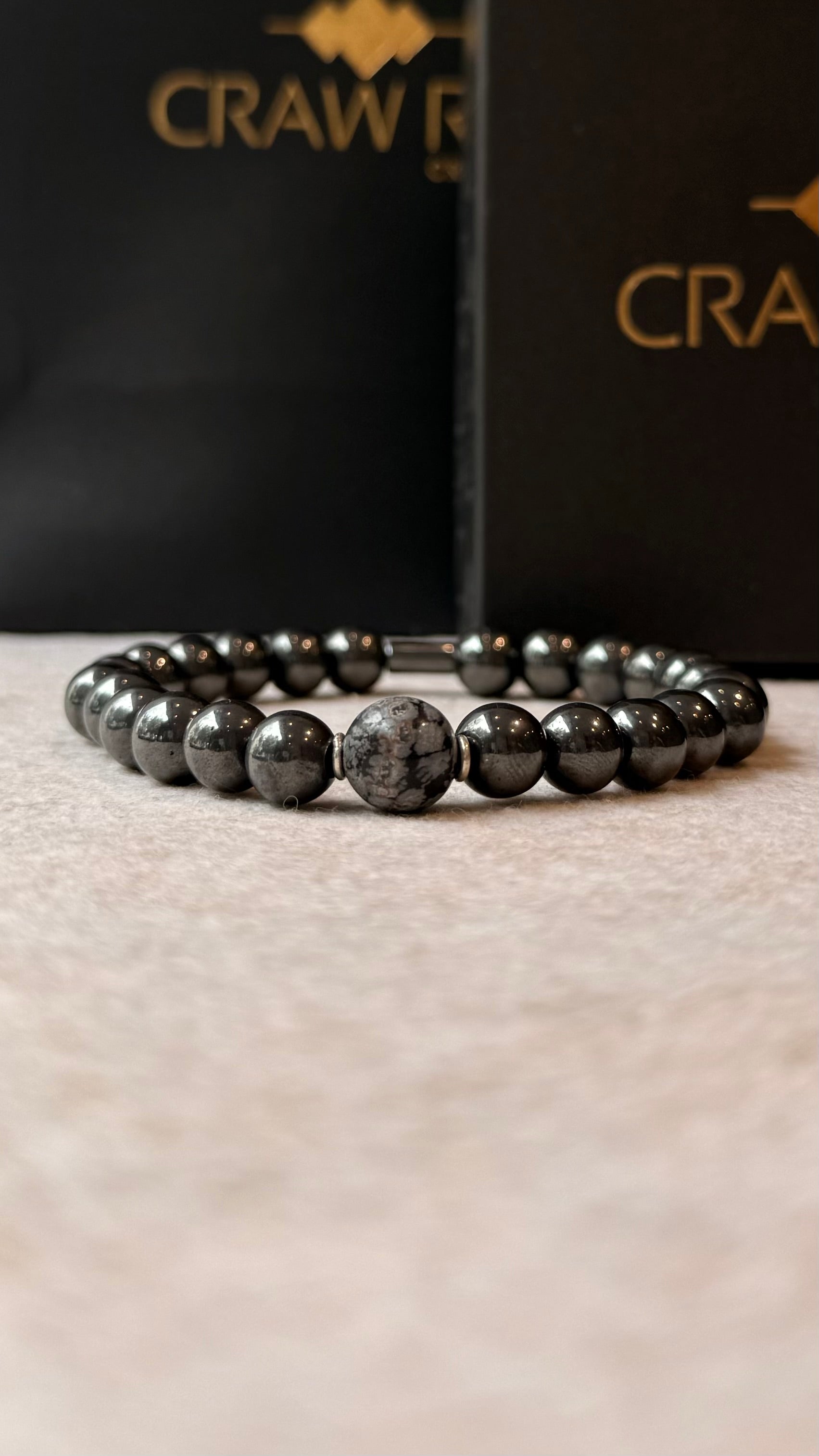 Feito mão com cristais de Hematita e Obsidiana Flocos de Neve.