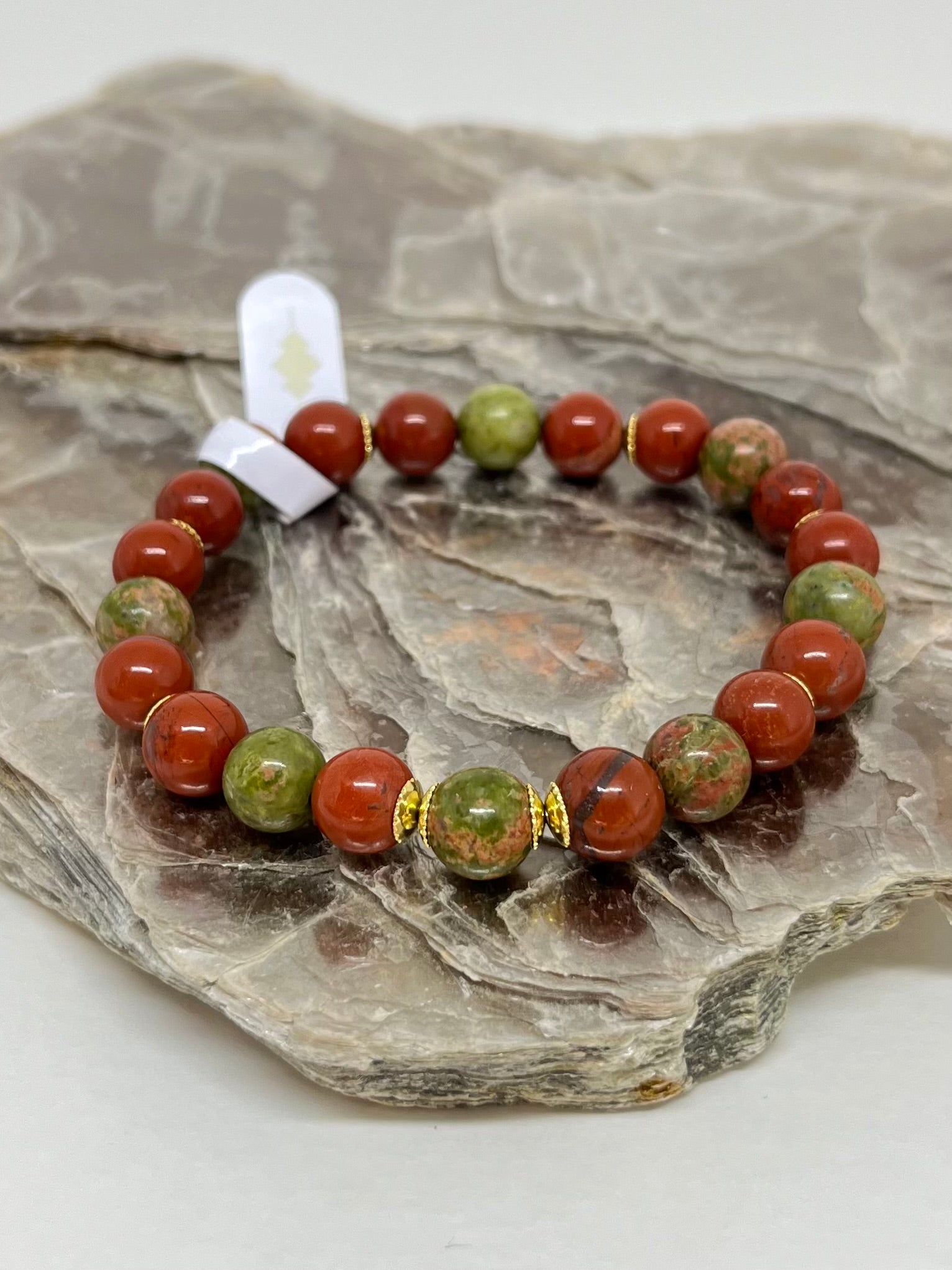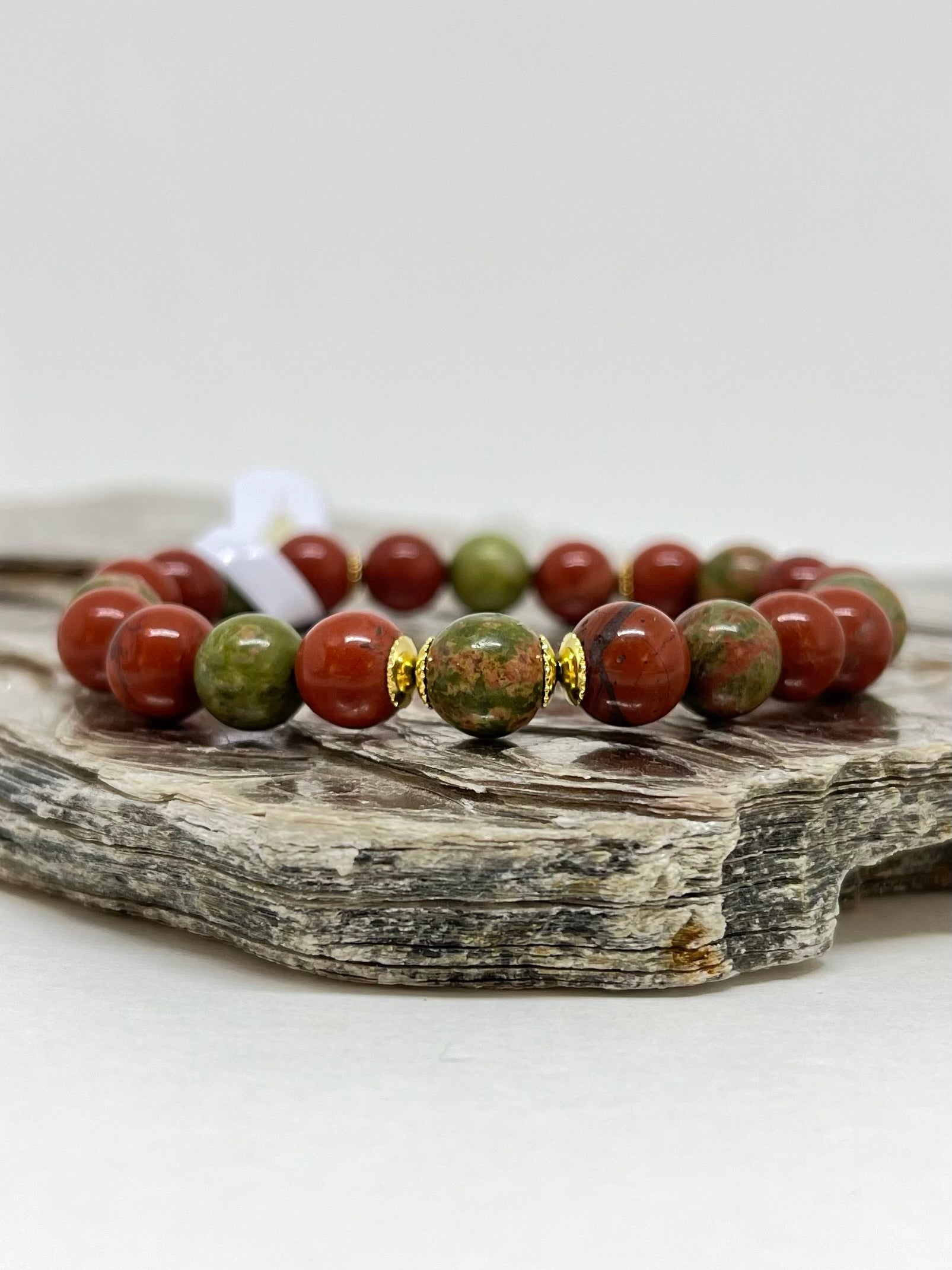 CR Golden | Jaspe Vermelho e Unakita – Vitalidade, Visão e Autoconhecimento (Banho Ouro 18K)